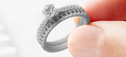 Interested in trying out materials and printing methods for your jewelry needs? Dynamism's online 3D Stereolithography, SLS and FFF printing service is fast and easy. Get started your 3D printed samples today.