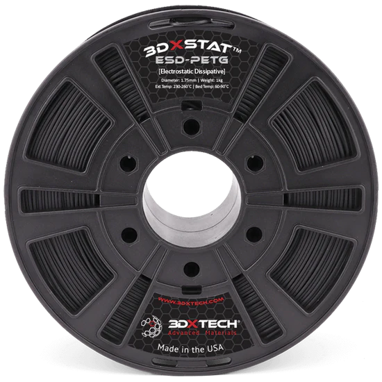Dynamism Digital Manufacturing Fast and Professional on-demand 3D Printing Start Printing Now3DXSTAT ESD-PETG is an advanced ESD-safe material engineered for critical applications requiring electrostatic discharge protection. Target surface resistance: 104-109 Ohm.
