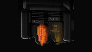 A new high-performance fan, integrated into the toolhead front cover, efficiently cools the extruder and hotend heatsink. Intelligent temperature management reduces the risk of clogging and filament jamming in demanding environments, allowing a 3 °C increase in the printer’s recommended operating temperature.
