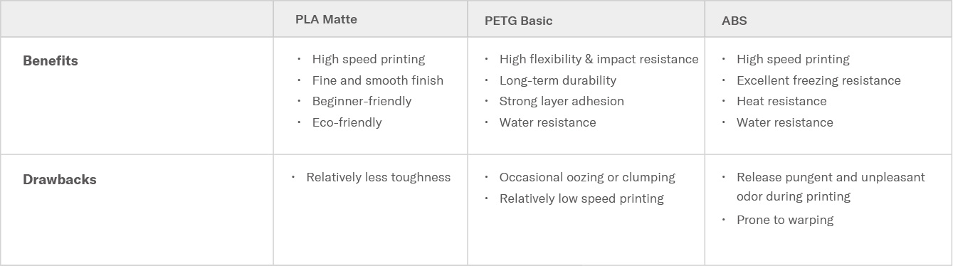 An upgrade from regular PLA materials for high flexibility and excellent impact resistance.