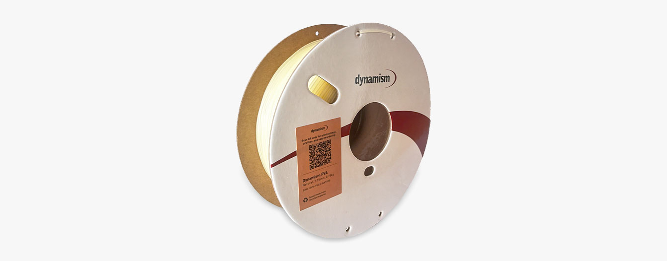 Dynamism PVA is a dissolvable support material for dual-extrusion 3D printers. Print water-soluble support structures with great adhesion to PLA, Nylon, TPU, and PVB print materials, while it can also be used in combination with PETG print materials (geometry dependent).