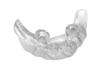 DNG is a fast printing transparent and easy-fit splint model resin with superb abrasion resistance, mechanical properties and biocompatibility. The custom-made 3D printed splints precisely stabilize the dentition and/or oral musculature while facilitating functional dentition adjustment. The transparent and comfortable material perfectly balances between visual aesthetics and therapeutic performance and the simple yet efficient customization process greatly enriches the dental chairside applications.