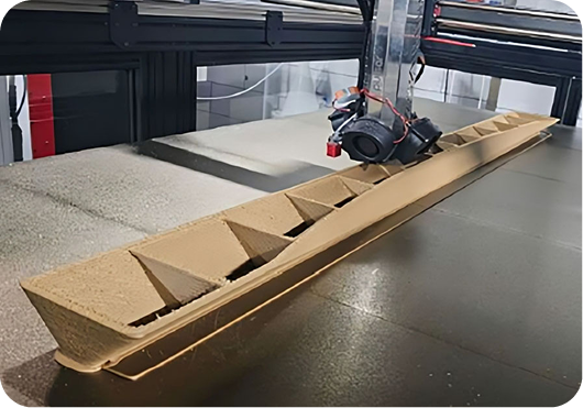 Print huge parts in one go with an industry-leading 3,000 × 1,000 × 1,000 mm build area dramatically reducing assembly and post-processing time.