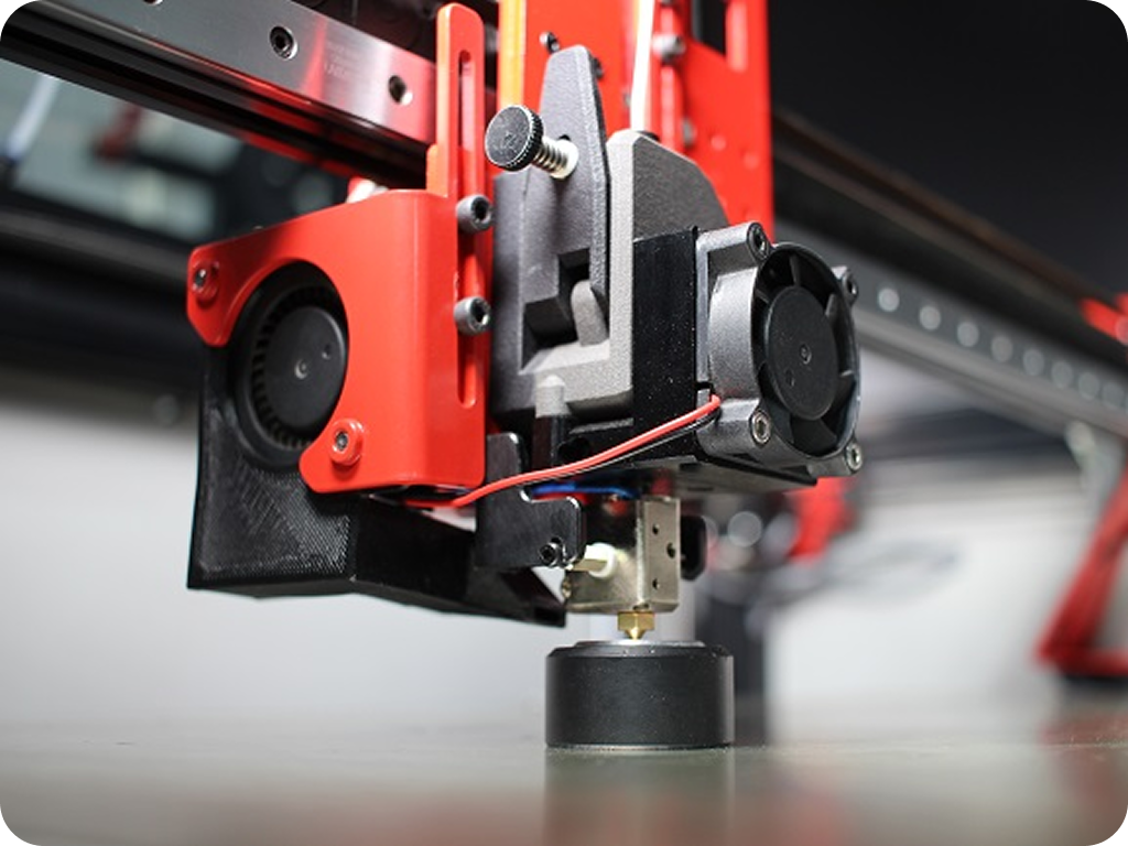 Unlike traditional systems, the print bed remains stationary while the extruder moves on all axes yielding greater stability, improved surface quality, and easier calibration.