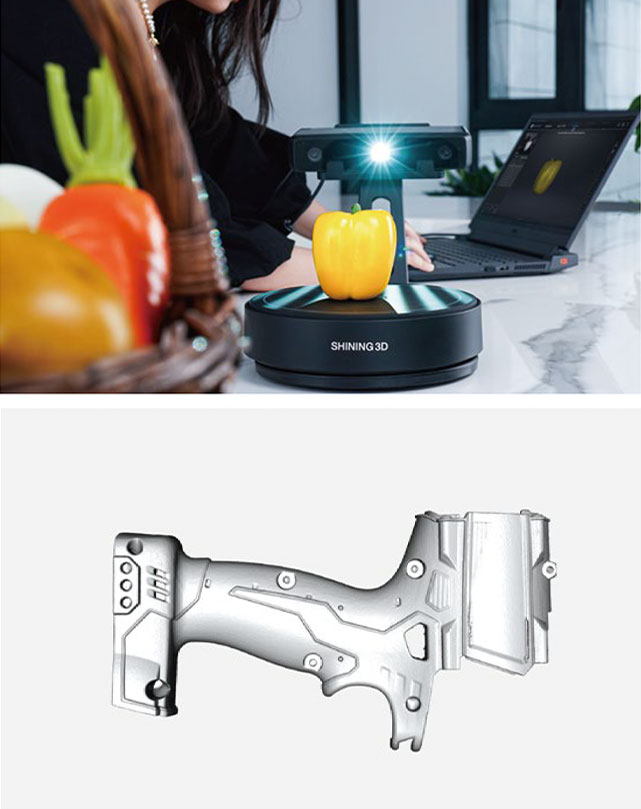 Depending on the size of the object, scanning can be carried out using a turntable for automatic scanning or a tripod for manual scanning.